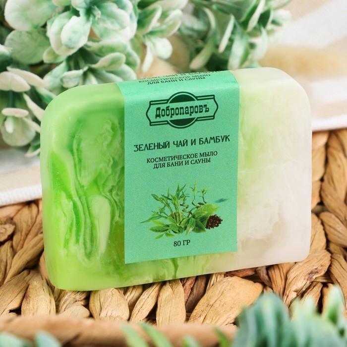 Мыло СПА - уход для бани и сауны "Зелёный чай и бамбук" Добропаровъ РУЧНАЯ РАБОТА 80 гр
