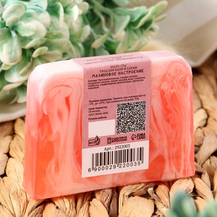 Мыло СПА - уход для бани и сауны "Малиновое настроение" Добропаровъ РУЧНАЯ РАБОТА 80 гр