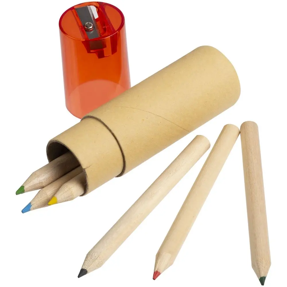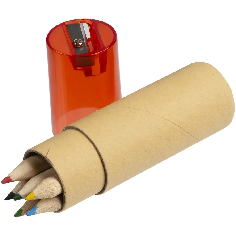 В комплекте: 6 заточенных цветных карандашей HB, пенал с точилкой.