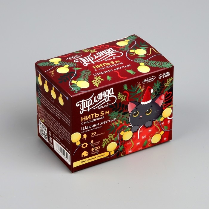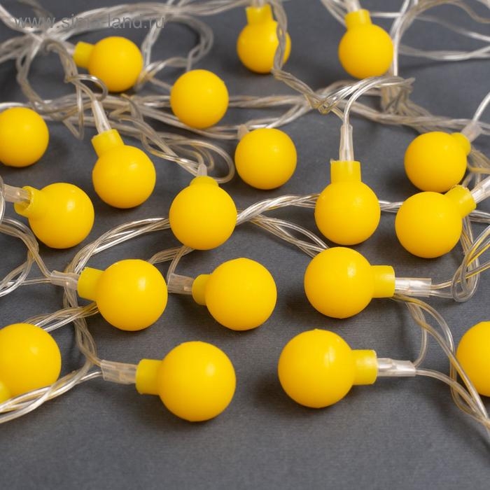 Гирлянда «Нить» 5 м с насадками «Шарики жёлтые», IP20, прозрачная нить, 30 LED, свечение жёлтое, 8 режимов, 220 В
