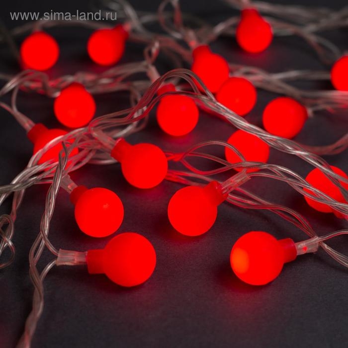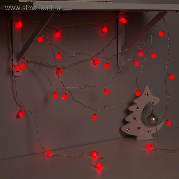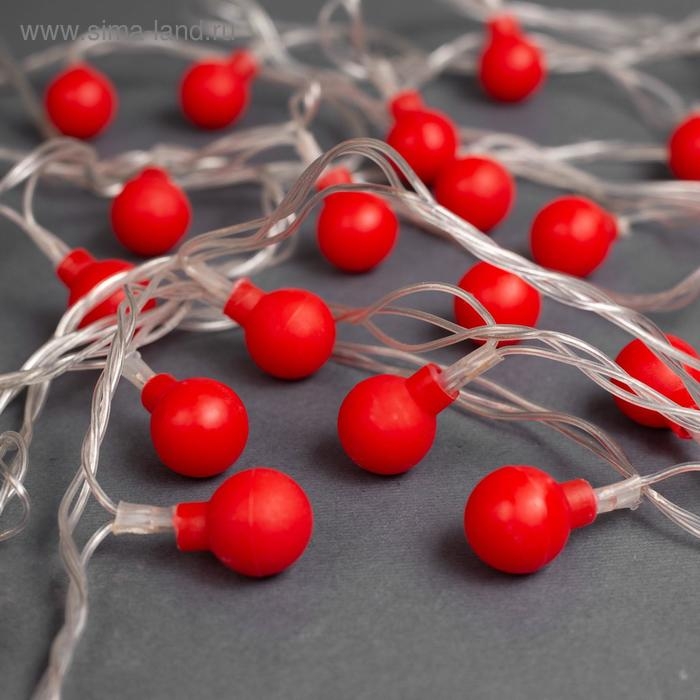 Гирлянда «Нить» 5 м с насадками «Шарики красные», IP20, прозрачная нить, 30 LED, свечение красное, 8 режимов, 220 В