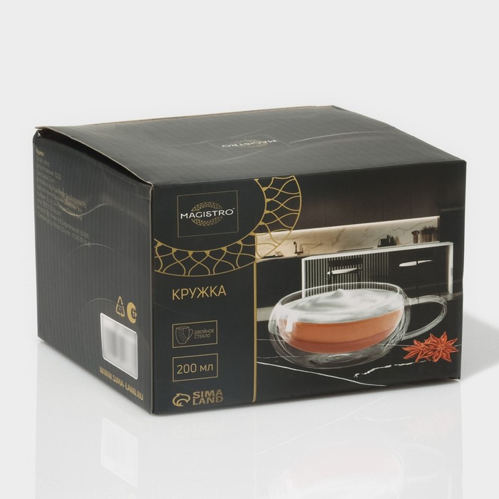 Кружка стеклянная с двойными стенками Magistro «Лиди. Дуо», 200 мл, 12×9,5×6,5 см