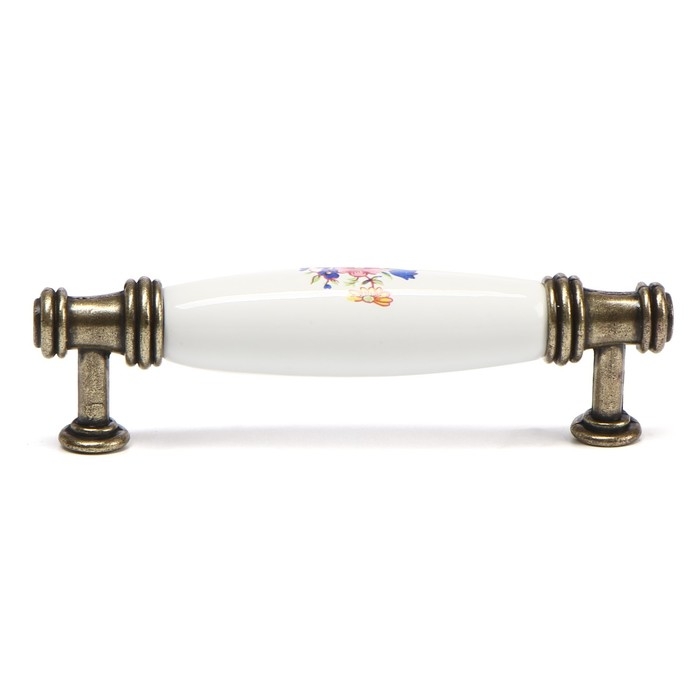 Ручка скоба FLOWER Ceramics изготовлена в дизайнерском стиле из металла с керамической вставкой.