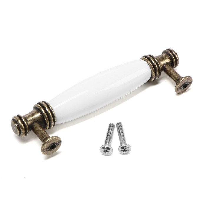 Интересный дизайн ручки сочетается с различными типами мебельного гарнитура. Фурнитура имеет привлекательный внешний вид и компактный размер. Бронзовый оттенок металла в сочетании с белоснежной керамикой идеально подходит к мебельным фасадам в различной цветовой гамме.