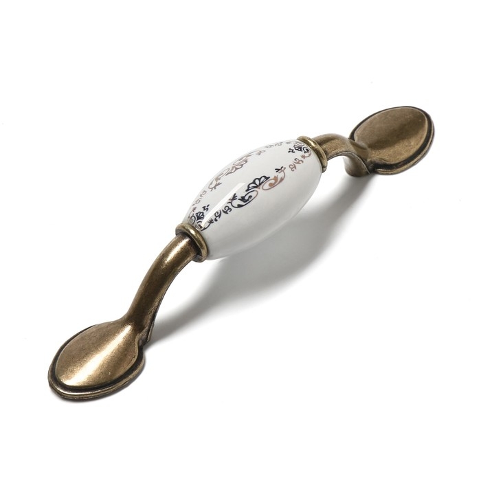 Интересный дизайн ручки сочетается с различными типами мебельного гарнитура. Фурнитура имеет привлекательный внешний вид и компактный размер. Бронзовый оттенок металла в сочетании с белоснежной керамикой идеально подходит к мебельным фасадам в различной цветовой гамме.