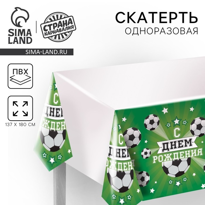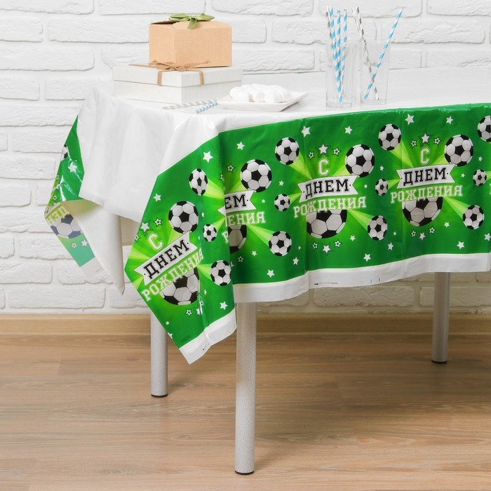 Скатерть одноразовая «С днём рождения», футболист, 180х137см