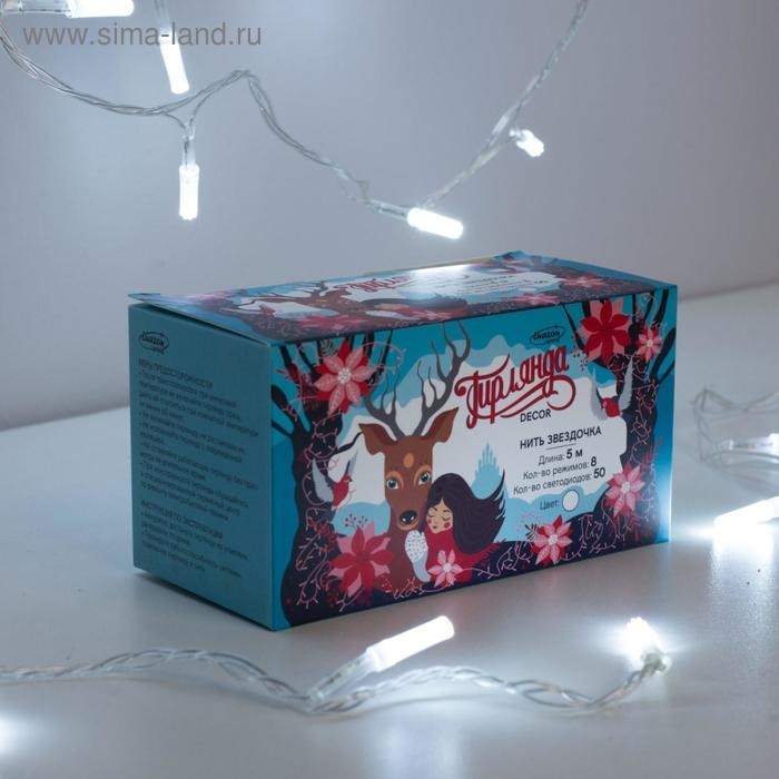 Гирлянда «Нить» 5 м с насадками «Звёздочки», IP20, прозрачная нить, 50 LED, свечение белое, 8 режимов, 220 В