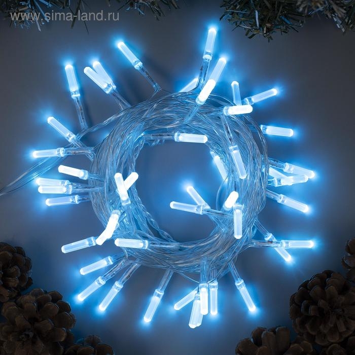 Гирлянда «Нить» 5 м с насадками «Хрусталики», IP20, прозрачная нить, 50 LED, свечение аквамарин, 8 режимов, 220 В