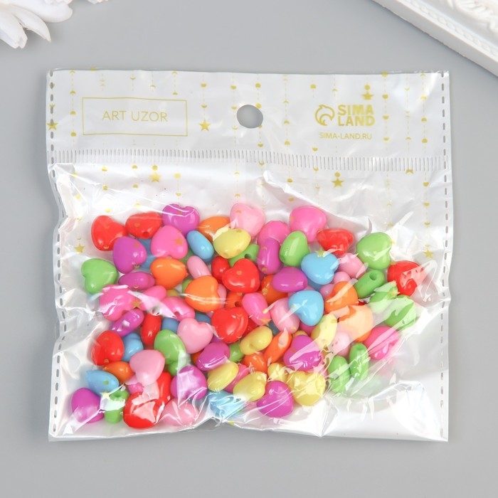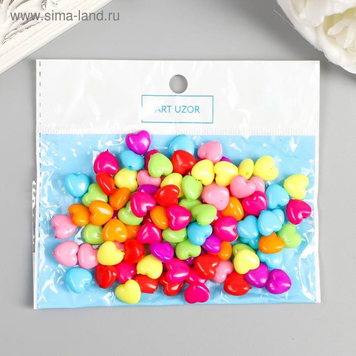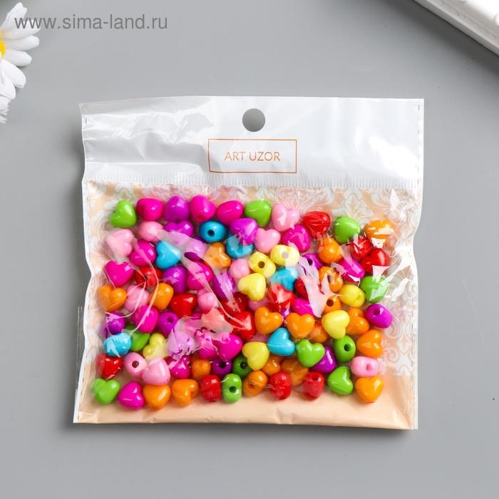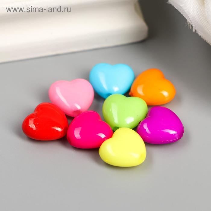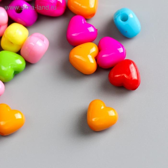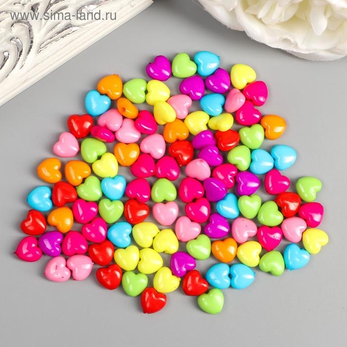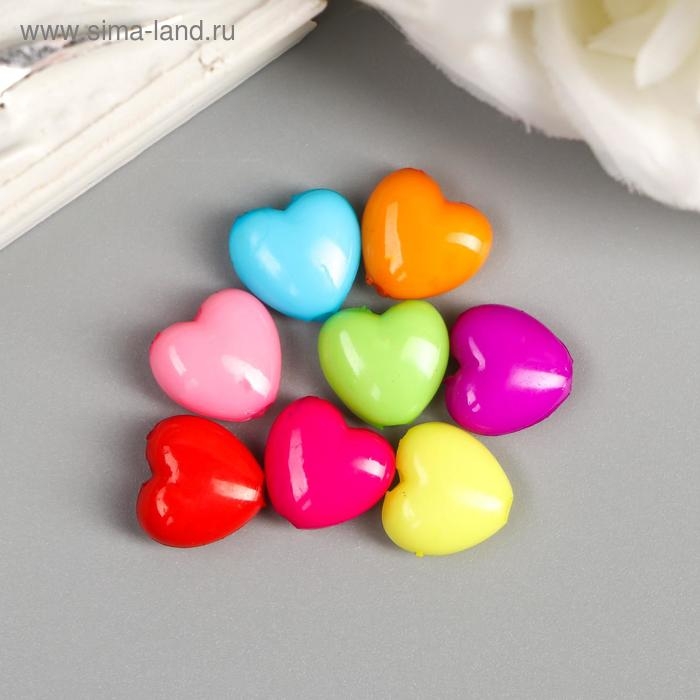 Бусины для творчества пластик "Сердечко пузатое" цветные набор 100 шт 1х1,1 см