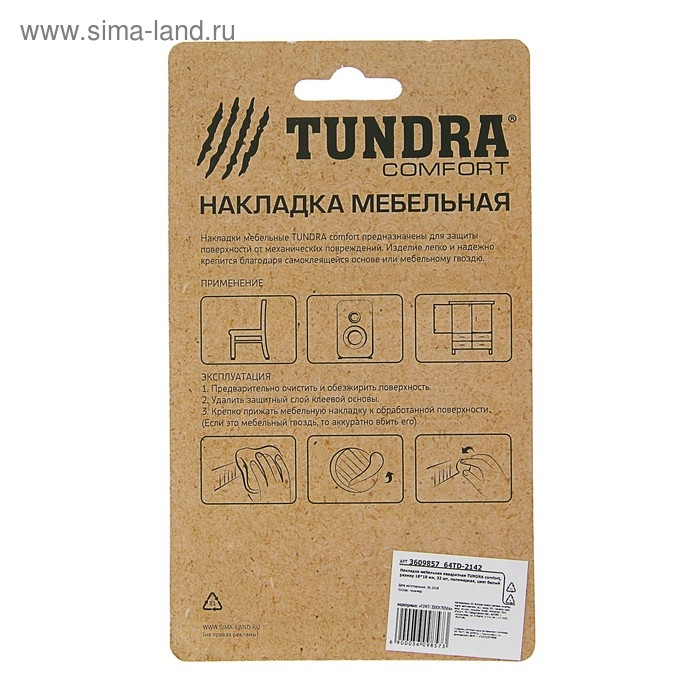 Накладка мебельная квадратная ТУНДРА, размер 18 х 18 мм, 32 шт, полимерная, цвет белый