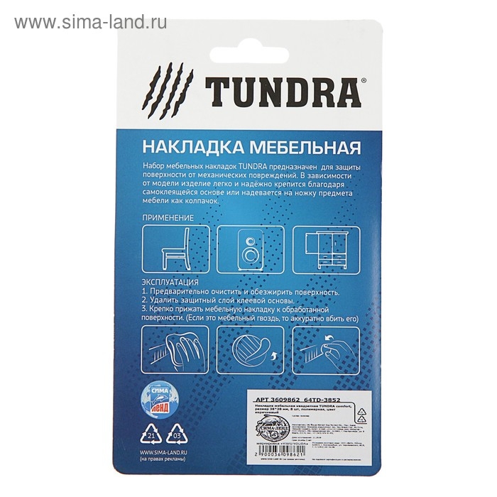 Накладка мебельная квадратная ТУНДРА, размер 38 х 38 мм, 8 шт., полимерная, коричневая