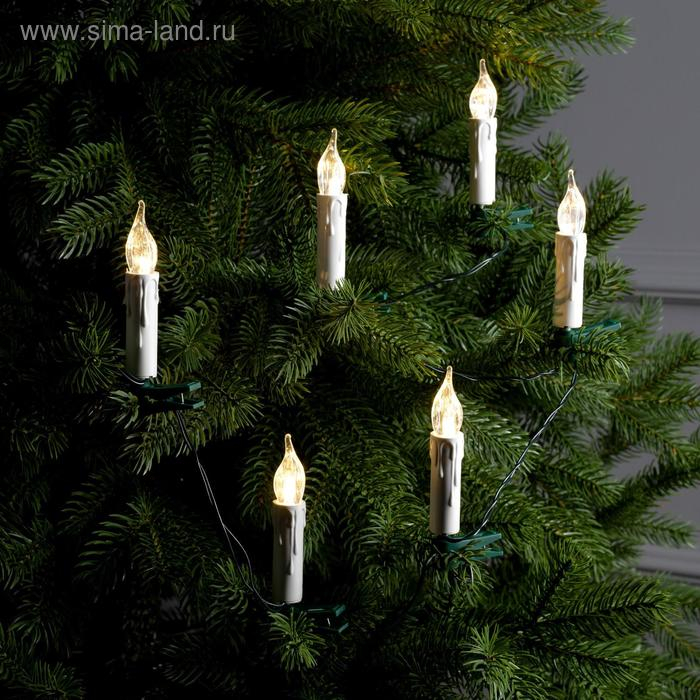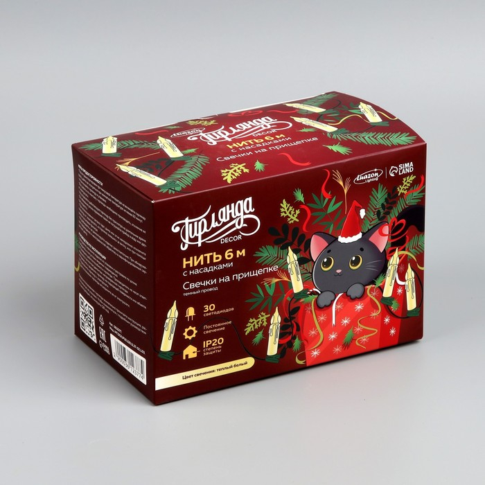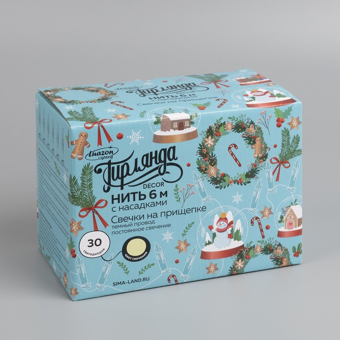 Гирлянда «Нить» 6 м с насадками «Свечи на прищепке», IP20, тёмная нить, 30 LED, свечение тёплое белое, 220 В