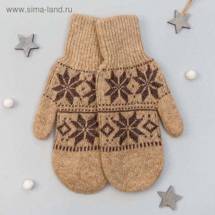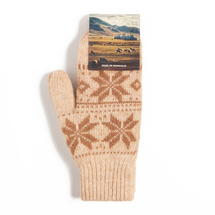 Варежки женские из монгольской шерсти, цвет бежевый, размер 17-19 (6,5-7,5)