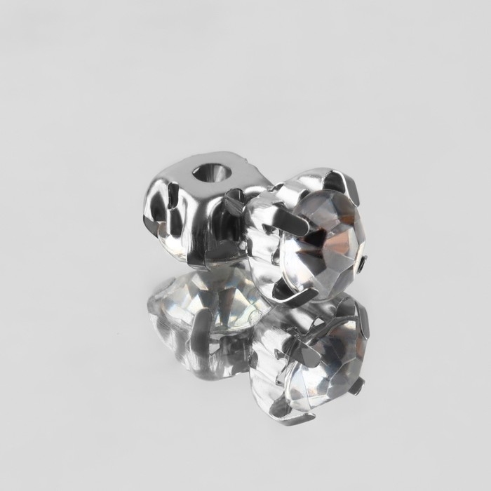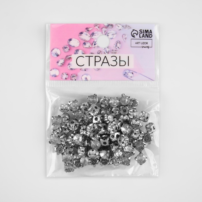 Стразы пришивные «Круг», в оправе, d = 6 мм, 100 шт, цвет белый