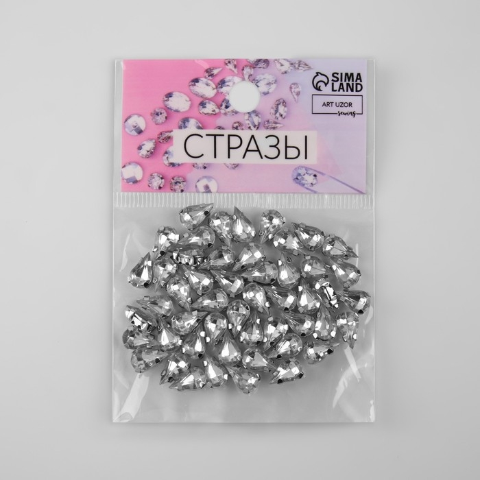 Стразы пришивные «Капля», в оправе, 6 × 10 мм, 50 шт, цвет белый