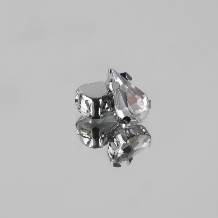Стразы пришивные «Капля», в оправе, 10 × 14 мм, 20 шт, цвет белый
