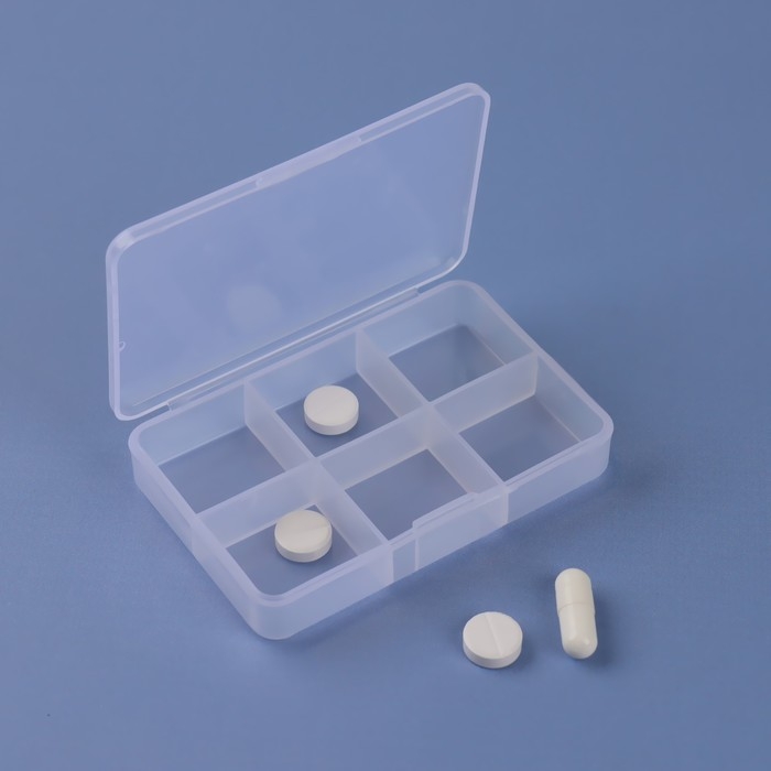 Таблетница, 9 × 6 × 2 см, 6 секций, цвет белый
