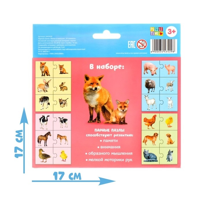 Парные пазлы помогут развить логику, внимание, пространственное мышление и мелкую моторику.
