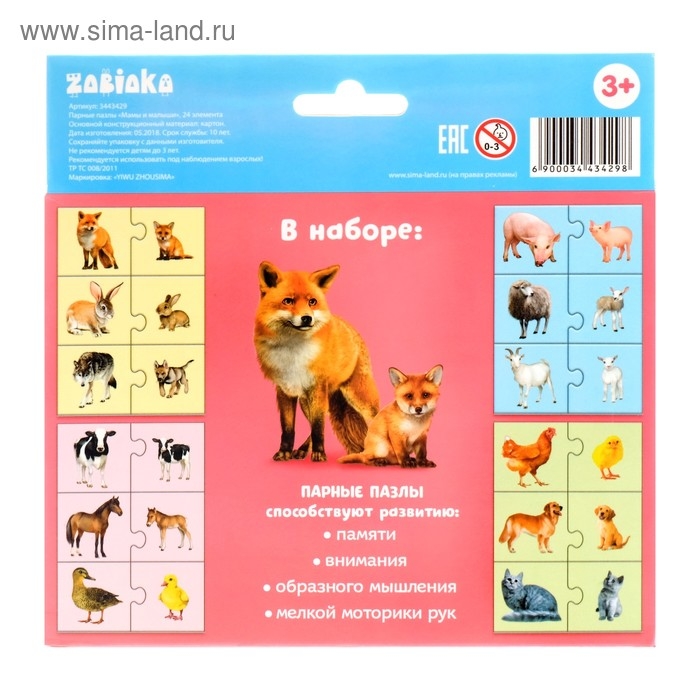 Парные пазлы «Мамы и малыши», 12 пазлов, 24 детали