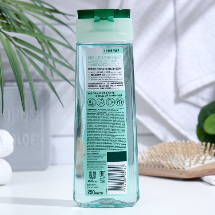 - Мицеллярная основа бережно очищает.