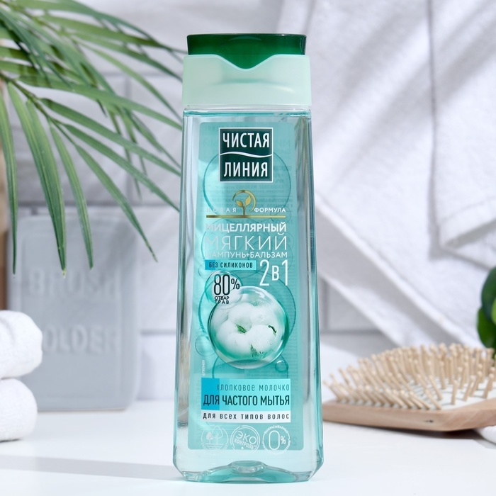 Шампунь-бальзам для волос 2 в 1 Чистая линия «Хлопковое молочко», 250 мл