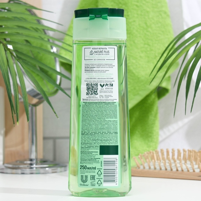 Шампунь восстанавливающей серии на 97% состоит из компонентов натурального происхождения. Эссенция 5 Nature Plus содержит 5 экстрактов и масел (экстракты вербены, шалфея, шиповника, масло миндаля и льна). Тщательно отобранные по своим ключевым свойствам активные натуральные компоненты предупреждают выпадение, питают и защищают волосы от повреждений.