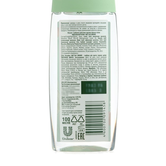 Лосьон глубокого действия «Чистая линия. Идеальная кожа», против чёрных точек, 100 мл