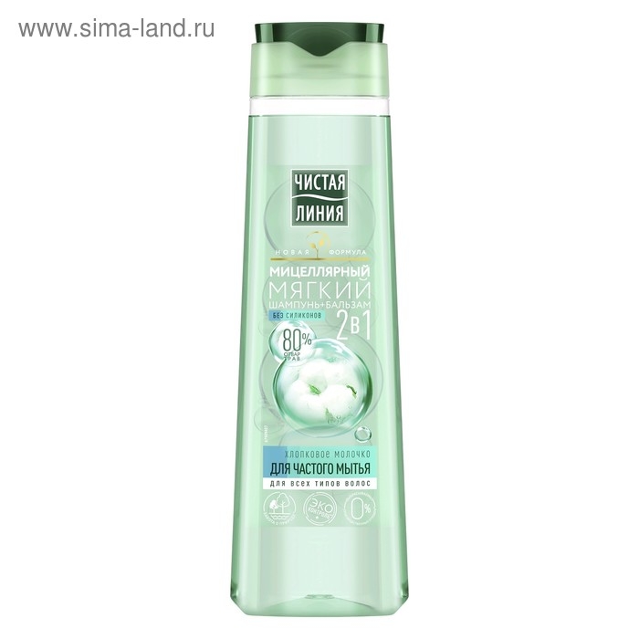 Шампунь-бальзам для волос 2 в 1 Чистая линия «Хлопковое молочко», 400 мл
