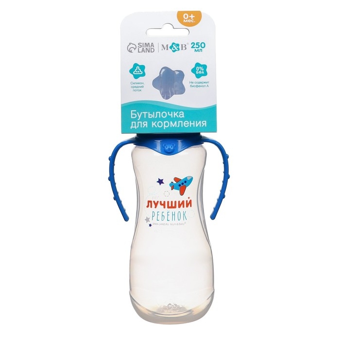 Бутылочка для кормления «Лучший ребёнок», классическое горло, приталенная, с ручками, 250 мл., от 0 мес., цвет синий
