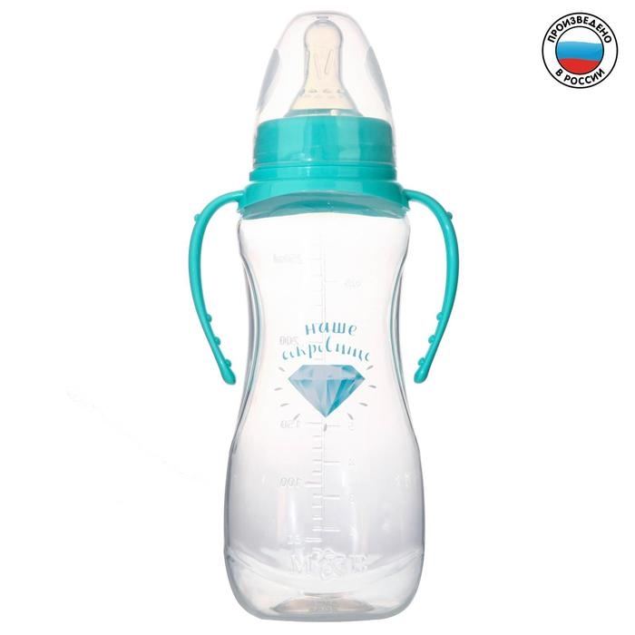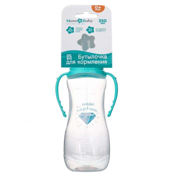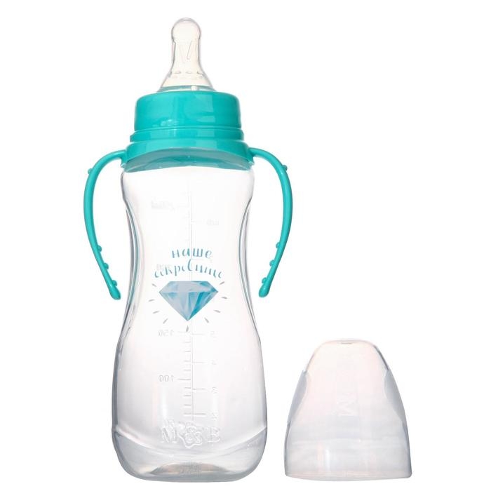 Бутылочка для кормления «Наше сокровище», классическое горло, приталенная, с ручками, 250 мл., от 0 мес., цвет бирюзовый