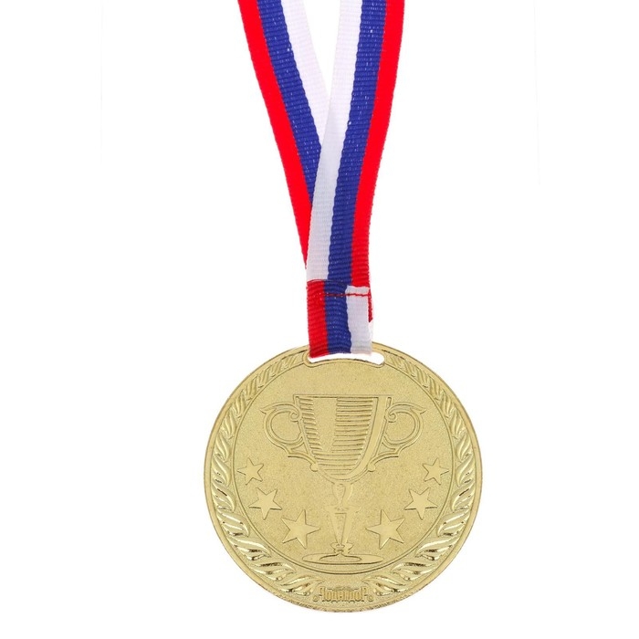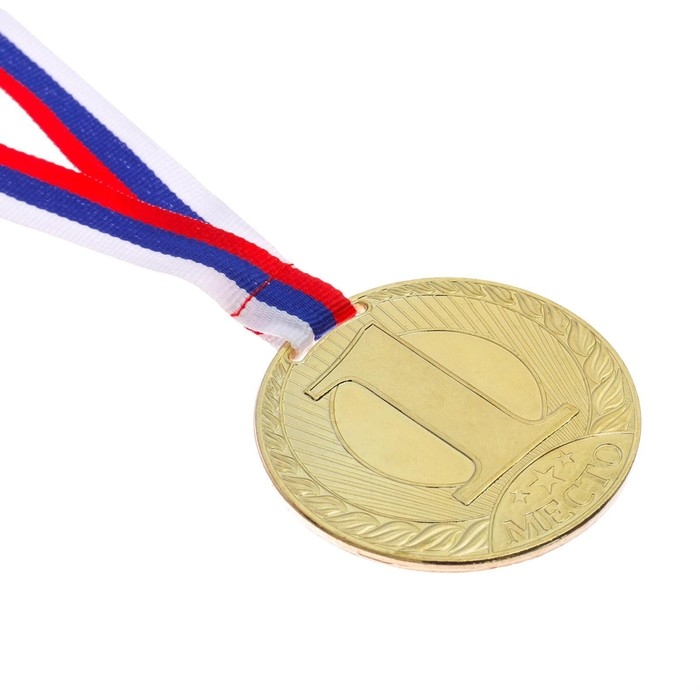 Медаль призовая 013, d= 5 см. 1 место, триколор. Цвет золото. С лентой