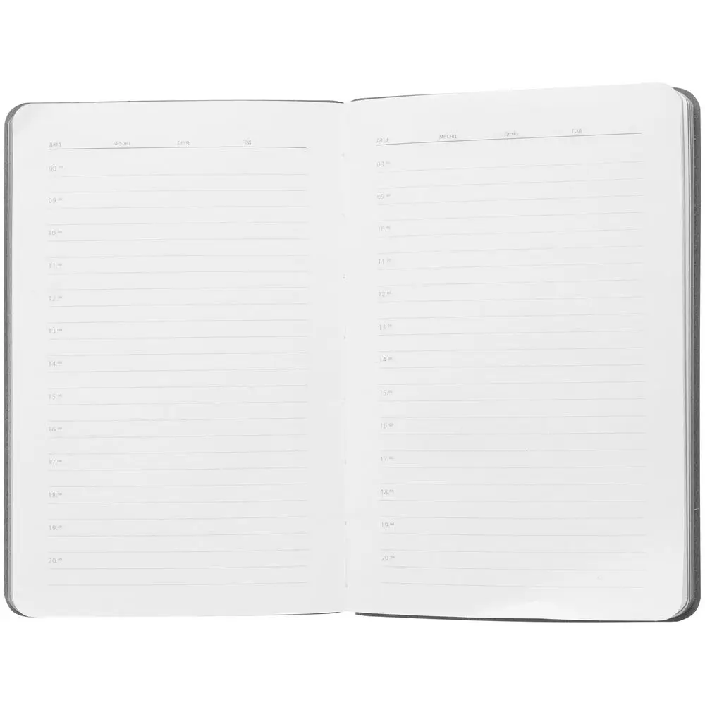 Ежедневник с гибкой обложкой выполнен из материала Soft Touch, светло-зеленый YY и серого Latte (внутренняя часть обложки).