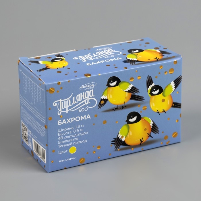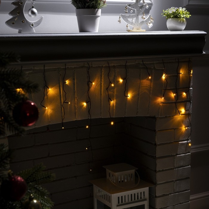 Гирлянда «Бахрома» 1.8 х 0.5 м, IP20, тёмная нить, 48 LED, свечение жёлтое, 8 режимов, 220 В
