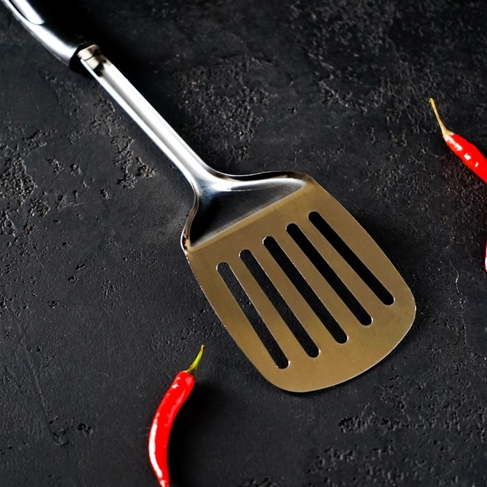 Лопатка из нержавеющей стали с отверстиями «Прайм», длина 39,5 см, цвет металла золотой