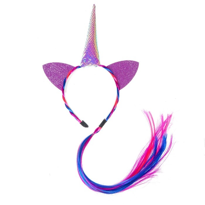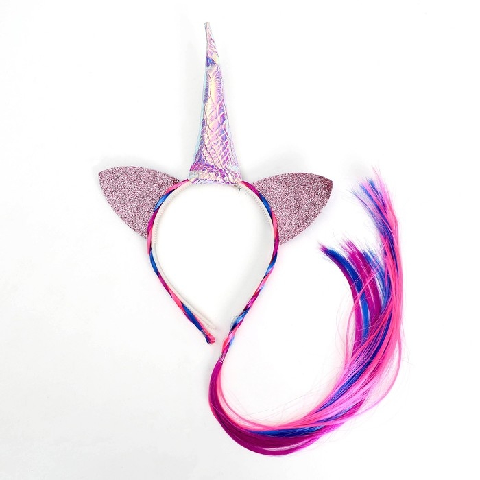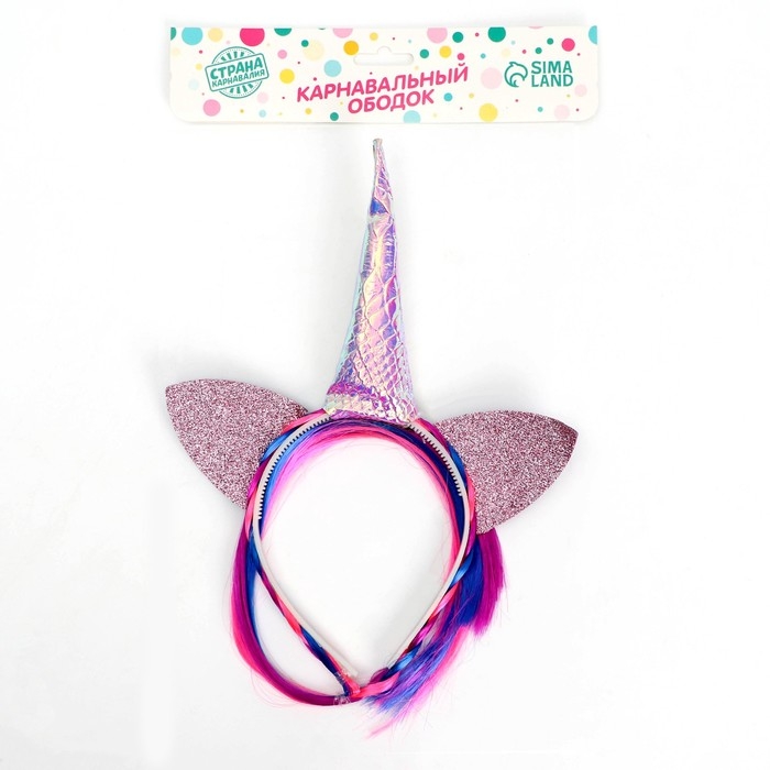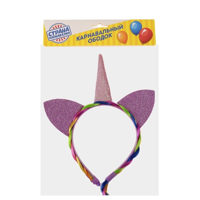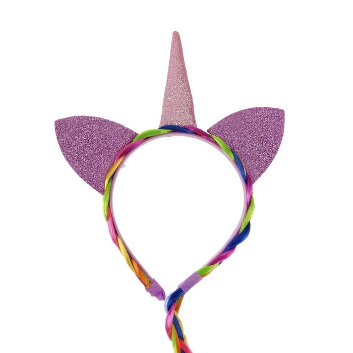 Карнавальный ободок «Единорог», с косичкой, цвет розовый