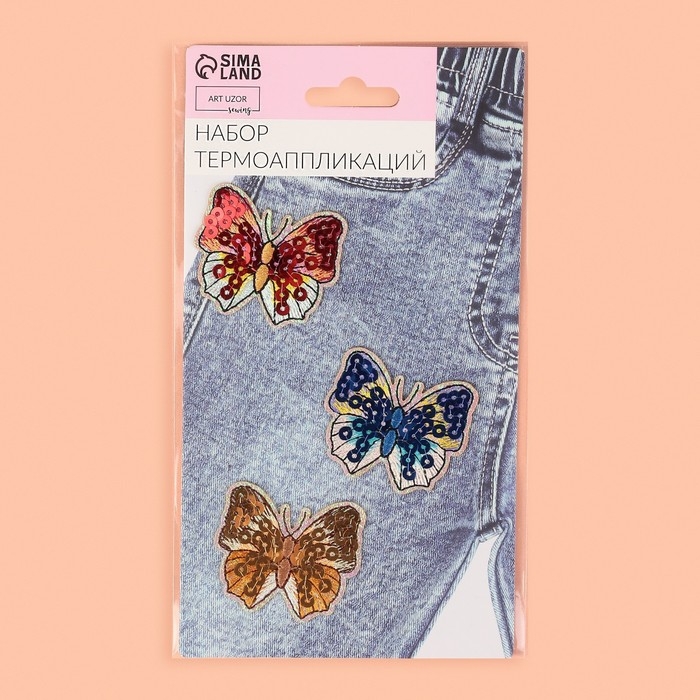 Набор термоаппликаций «Бабочки», 3 шт, с пайетками