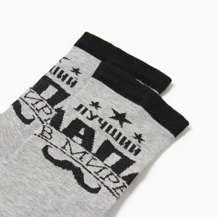 Носки мужские "Лучший в мире папа" цвет серый, размер 41-44 (27-29 см)