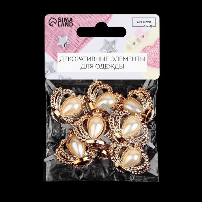 Декоративные элементы на прокол «Короны», 4 × 2,5 см, 10 шт, цвет золотой