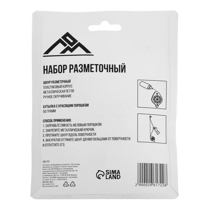 Набор разметочный ЛОМ, шнур малярный 15 м, красящий порошок 50 г, красный