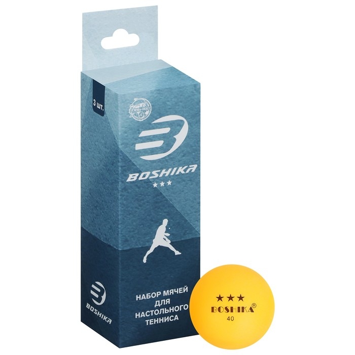 Мяч для настольного тенниса BOSHIKA 3***, набор 3 шт., PP, цвет оранжевый