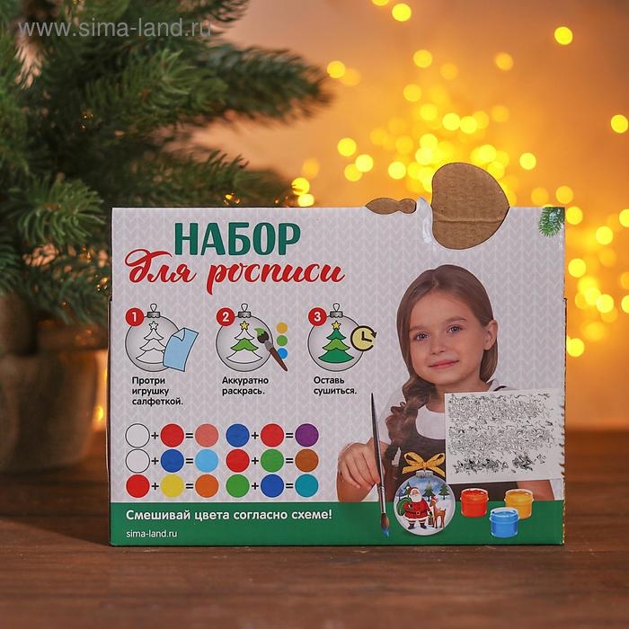Набор новогодних шаров под раскраску 2 шт. «Пара №3» с подвесом + краска 6 цв. по 2 мл, кисть