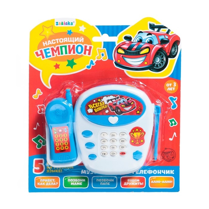 Телефон создан для сюжетных игр. Он помогает развивать моторику и слух у деток. Дизайн игрушки не оставит малыша равнодушным, ведь она предназначен для настоящего чемпиона!