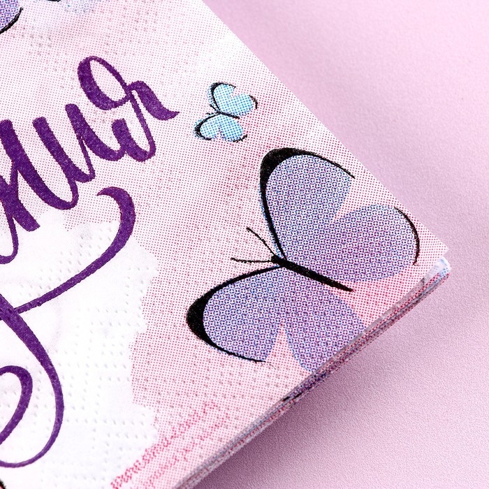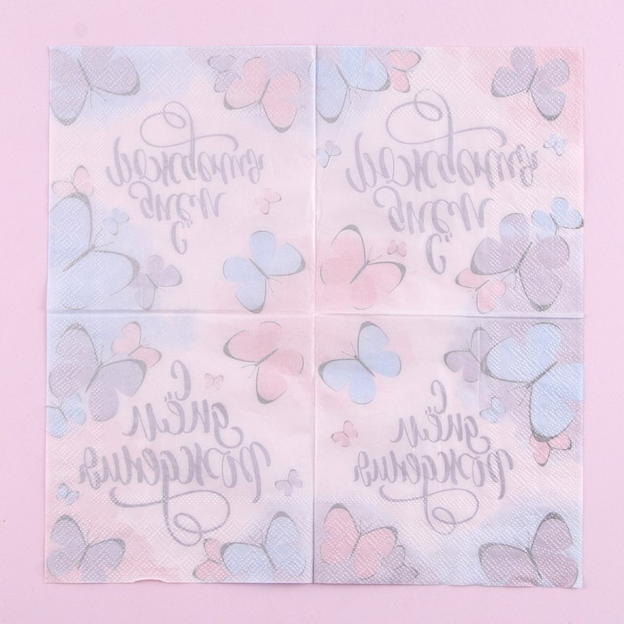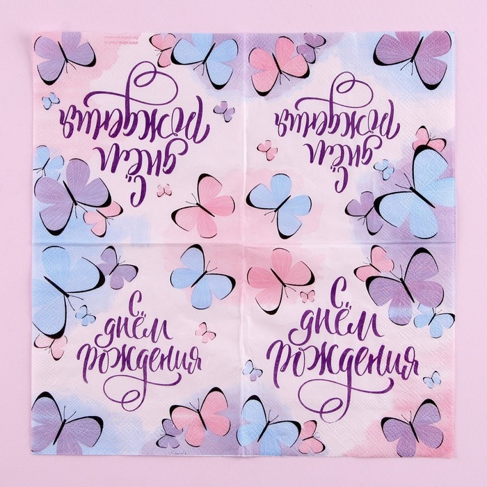 Салфетки бумажные «С днём рождения», бабочки, 25х25 см, набор 20 шт.