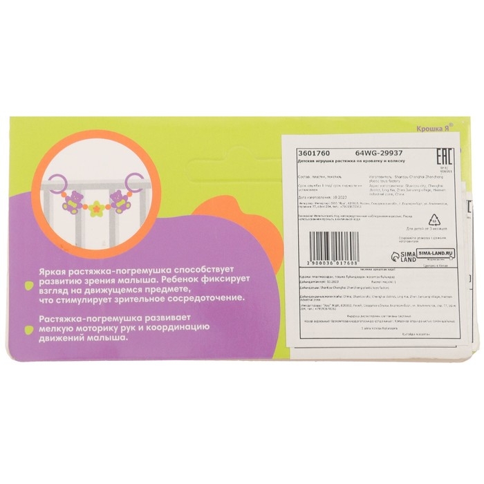 Растяжка на коляску/кроватку «Русское поле», цвет МИКС, Аэлита