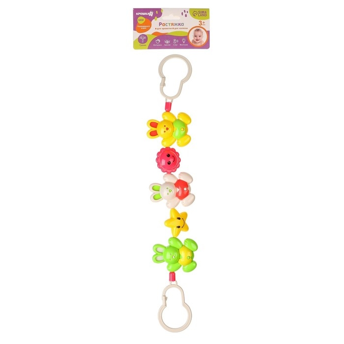 Растяжка на коляску/кроватку «Слоник», 3 игрушки с погремушками, цвет МИКС, Крошка Я