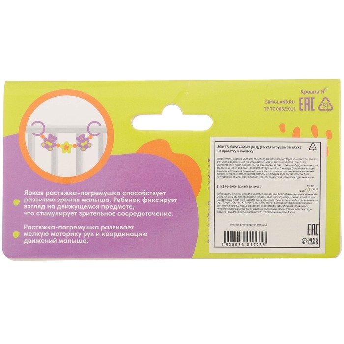 Растяжка на коляску/кроватку «Русское поле», цвет МИКС, Аэлита