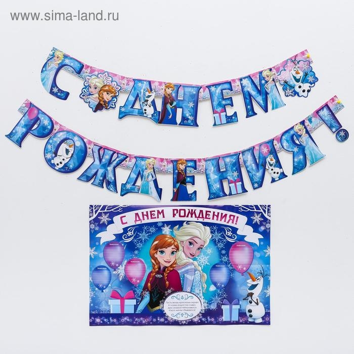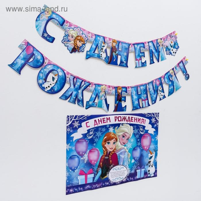 Гирлянда на люверсах с плакатом "С Днем Рождения", длина 210 см, Холодное сердце