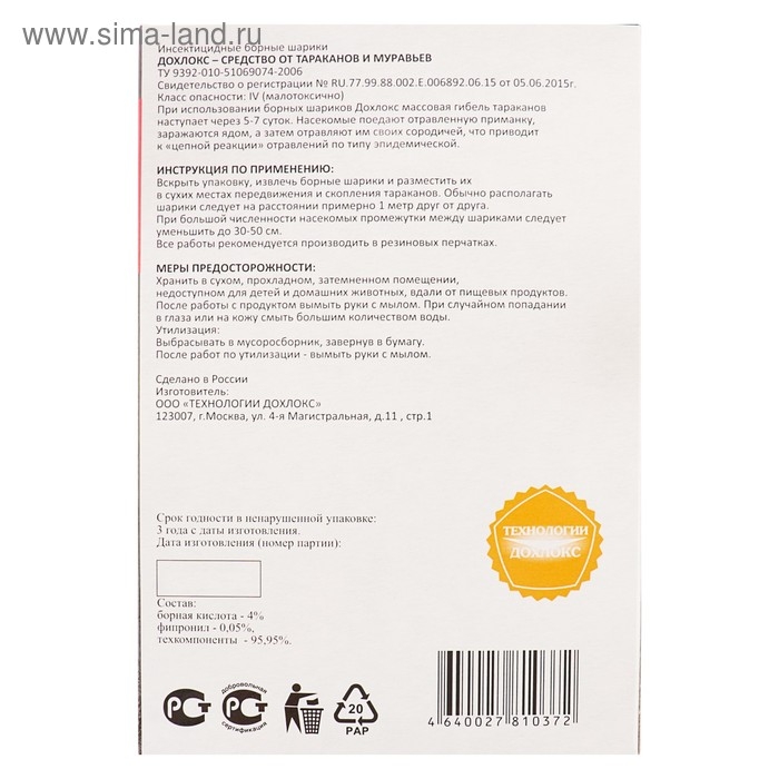 Борные шарики от тараканов Дохлокс "Сгинь №56", 8 шт