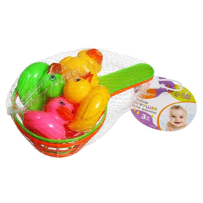 Набор игрушек для ванны «Рыбалка», 2 сачка, 5 уточек, Крошка