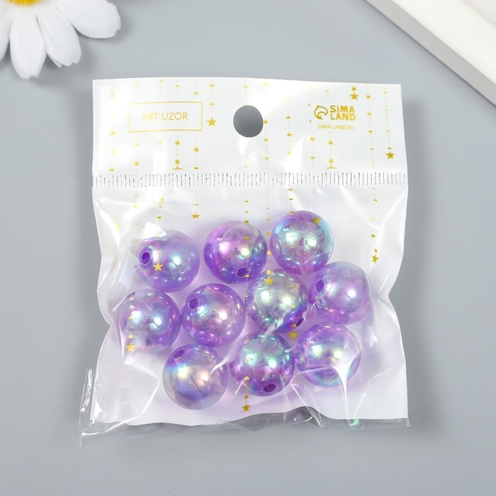 Бусины для творчества пластик "Перламутр сиреневый" набор 20 гр 1,6х1,6 см